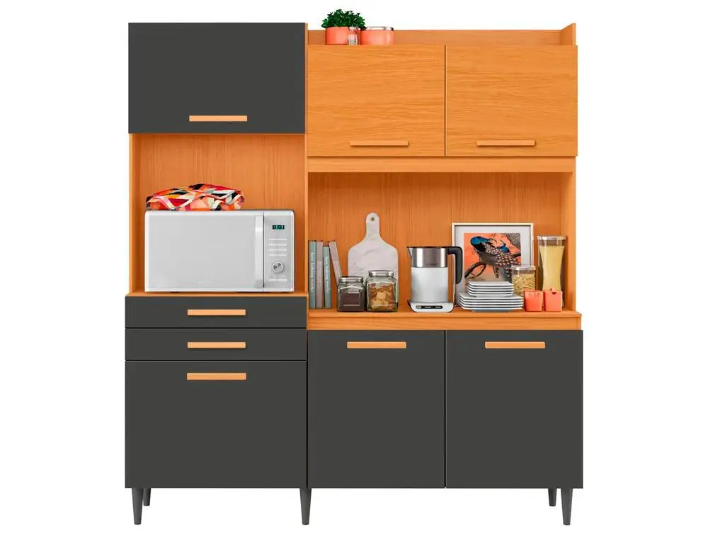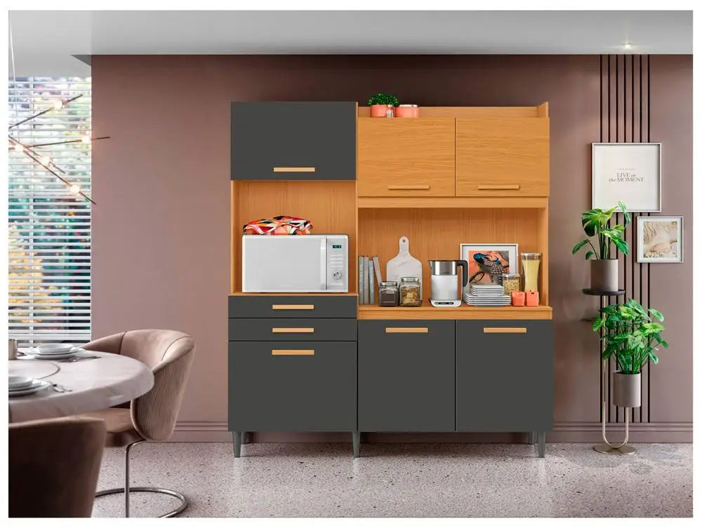 Transform your kitchen in a functional and modern environment with the Modulated Kitchen Aramóveis Selena. Ideal for those seeking practicality in everyday life and a generous internal space to store all your utensils and groceries. Imagine the impeccable organization with 6 doors and 2 spacious drawers, allowing each item to find its place affordably and making your culinary tasks easier. Experience the softness and durability of telescopic slides in drawers and metal hinges on doors, ensuring easy handling and perfect closure for much longer. The modern design in graphite color adds a touch of elegance and sophistication to your environment, combining with diverse styles of decoration. Built in MDP and MDF with coating in UV paint and finishing in textured varnish, Selena kitchen offers resistance and beauty for your day to day. More than a kitchen, it is the smart solution to optimize your space and make your moments in the kitchen more practical and enjoyable.